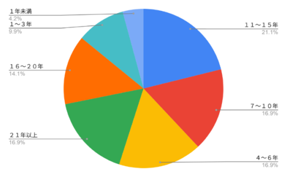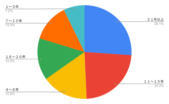 問2.ソーシャルワーカーとしての経験年数を教えてください。